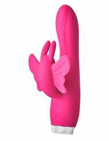 De Silicone Butterfly is een rabbit vibrator in de kleur roze.