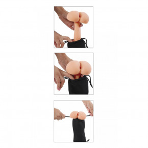 De Fantasy X-tensions Double Trouble Girth Gainer is een sleeve met dildo en ballstrap in huidskleur blank.