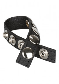 De Tri-Snap Scrotum Support Cockring Medium is een verstelbare cockring in de kleur zwart.